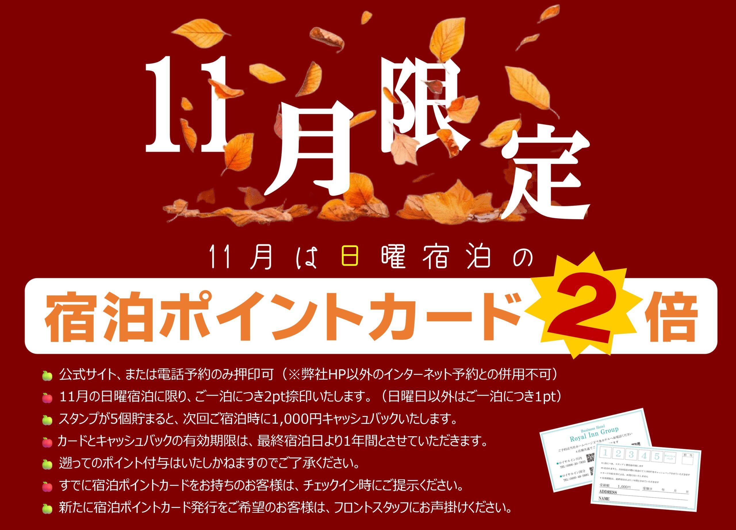 11月は毎週日曜日をポイント2倍とさせていただきます。